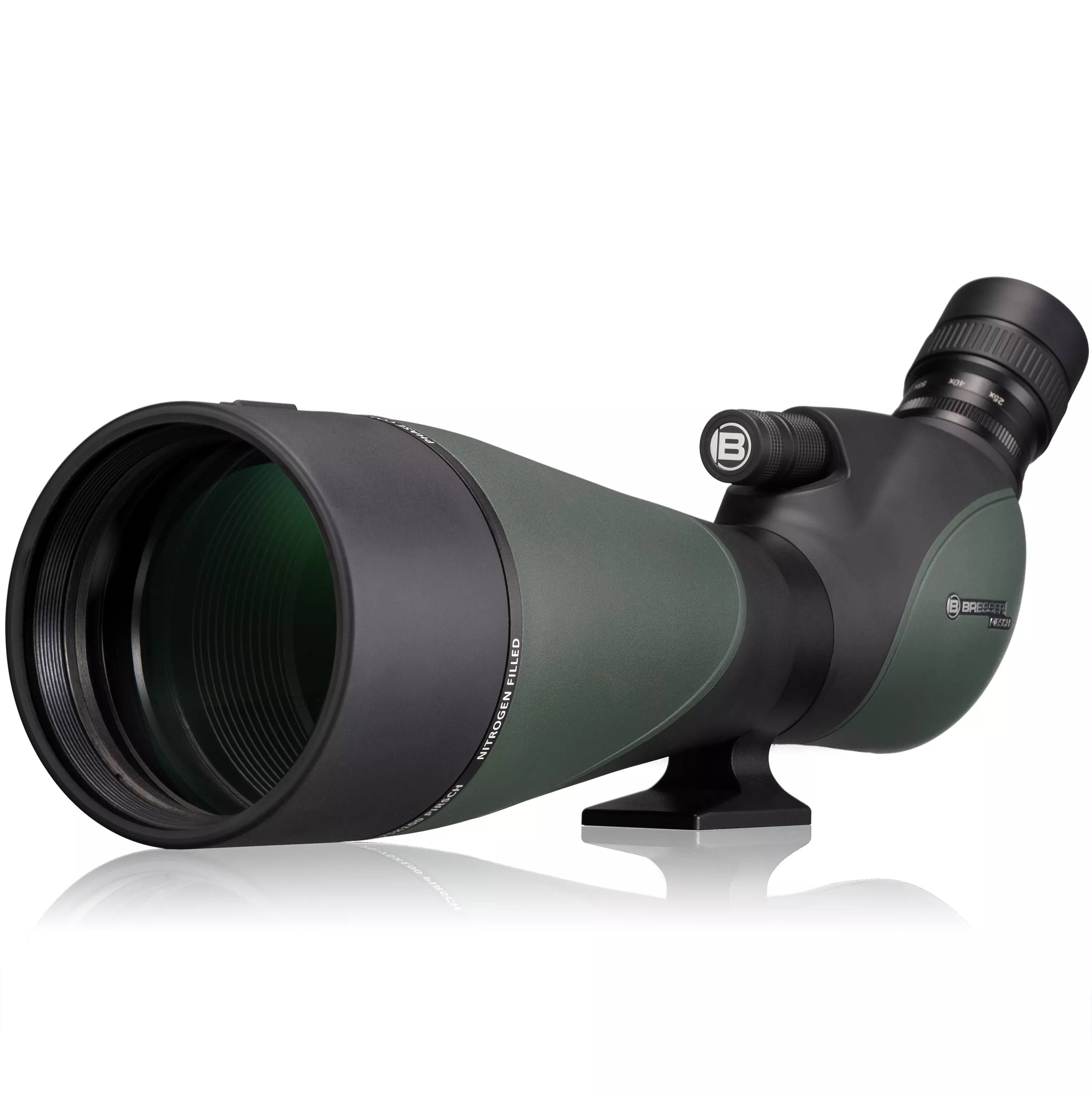 The Bresser Pirsch Gen II spotting scopes are primarily intended for nature observers. Equipped with a light-intense, fully broadband multi-coated 80 mm lens, they allow higher magnifications even at twilight. This spotting scope is also equipped with the high-quality UR coating for brighter and higher-contrast images. Together with the waterproof and nitrogen-filled housing and the non-reflective armouring, nature observers can determine e.g. bird species in any weather, even at long distances.