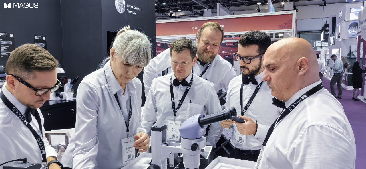 A háromnapos kiállítás során a MAGUS standját több mint 5500 szakember kereste fel. Megismerkedtek termékkínálatunkkal, kipróbálták berendezéseinket, és kérdéseket tettek fel szakértőinknek. Sokan saját mintákkal érkeztek kutatási célból, hiszen már ismerték a cég magas szintű szakértelmét és képességét a komplex analitikai kihívások tekintetében. A MAGUS mikroszkópokat számos különféle anyag vizsgálatára használták, többek között briliáns csiszolású gyémántokhoz, nyersgyémántokhoz, olajhoz, textíliákhoz, valamint a csapatunk által biztosított valódi meteorit vékonykőzettani metszetéhez. Ez egyben demonstrálta berendezéseink sokoldalúságát és megbízhatóságát.